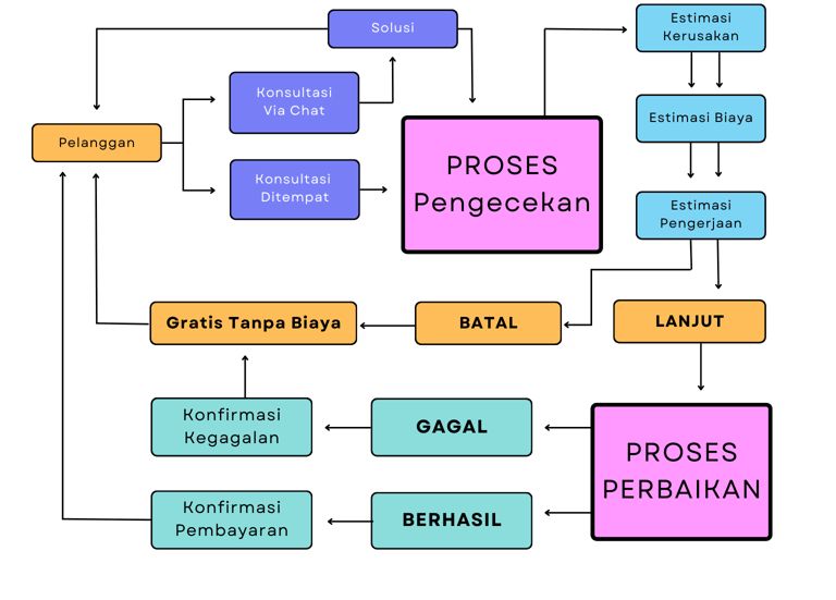 Kami menjamin kualitas layanan perbaikan yang memuaskan.